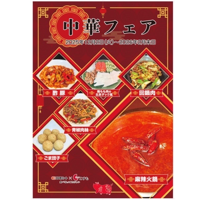 2025年12月2日(火)より、しゃぶてらすこすも開明店で「中華フェア」を開催しています。